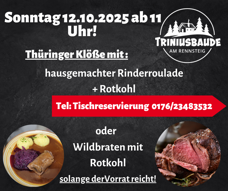 Sind heute spontan bei unserer Regenwanderung hier in der Triniusbaude am Rennsteig eingekehrt. Hatten auch gleich einen Platz bekommen, 5 Erwachsene und 2 Kinder. Sehr freundlicher Wirt, Preis/Leistung passt hier. Vorspeise und Hauptspeise waren Lecker und schön angerichtet, kann ich empfehlen. Zum Schluss gab's noch einen Schnapps aufs Haus. Kommen gerne wieder. Grüße aus Weimar und Nürnberg